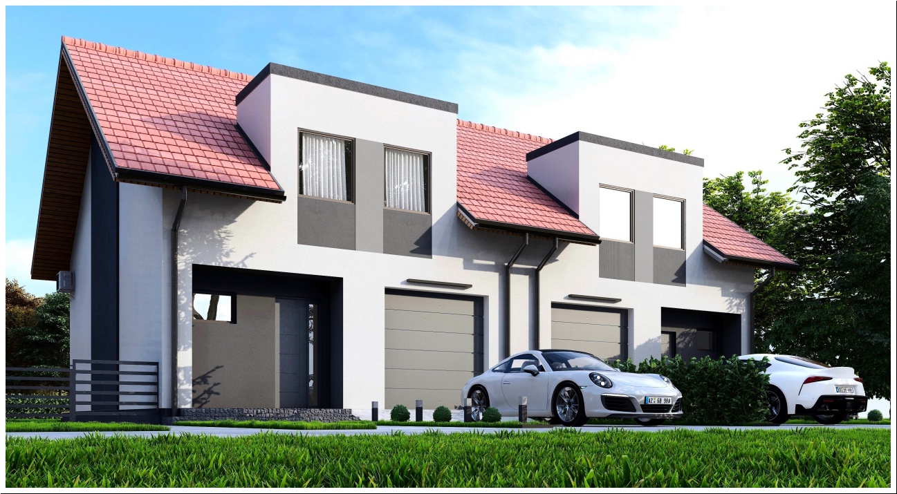 Wizualizacje zamieszczone w ofercie sprzedaży mają jedynie charakter poglądowy. Dom sprzedawany jest w stanie deweloperskim, aranżacja ogrodu pozostaje w kwestii nowego właściciela. Wykończenie nieruchomości „pod klucz” oraz stawka za usługę ustalane są indywidualnie z wykonawcą.