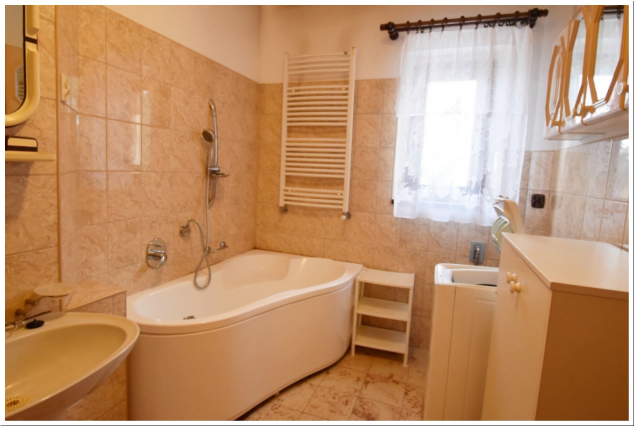 Na pierwszym piętrze znajdują się cztery sypialnie oraz główna, duża łazienka z wanną.